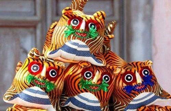 舊時端午節驅邪辟祟之物,也作裝飾品。我國古代視虎為神獸,俗以為可以鎮祟辟邪、保佑安寧。《風俗通》云:“虎者陽物,百獸之長也。能噬食鬼魅,……亦辟惡”。故民間多取虎為辟邪之用,其中尤以端午節的艾虎為最具特色。艾虎或以艾編剪而成,或剪彩為虎,粘以艾葉,佩戴于發際身畔。端午節飾戴艾虎的風習已經有千年以上的歷史。宋陳元規《歲時廣記》引《歲時雜記》:“端午以艾為虎形,至有如黑豆大者,或剪彩為小虎,粘艾葉以戴之。王沂公《端午帖子》詩:‘釵頭艾虎辟群邪,曉駕祥云七寶車’。”又清富察敦崇《燕京歲時記》:“每至端陽,閨閣中之巧者,用綾羅制成小虎及粽子……以彩線穿之,懸于釵頭,或系于小兒之背,古詩云:‘玉燕釵頭艾虎輕’,即此意也。”